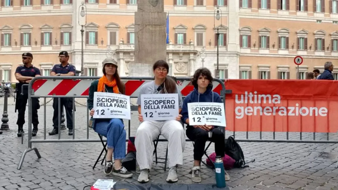 Non si ferma intanto la prostesta. Stamattina, intorno alle 10, le scioperanti Alina 36 anni, Beatrice e Serena, 39 anni, sono tornate davanti a Montecitorio. Le tre, al dodicesimo giorno senza cibo, hanno tentato di manifestare nuovamente per chiedere protezione alla Sumud Flotilla e il riconoscimento del genocidio da parte del governo Meloni.