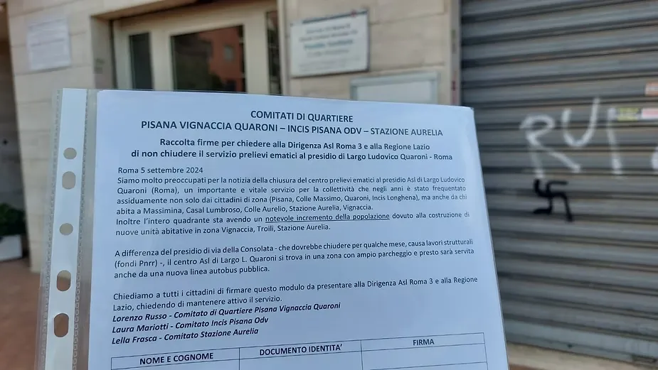 La preoccupazione però rimane e per questo è stata fatta partire dai comitati di quartiere una raccolta firme per chiedere alla dirigenza Asl e alla Regione Lazio di non chiudere il servizio prelievi al presidio di Largo Ludovico Quaroni.