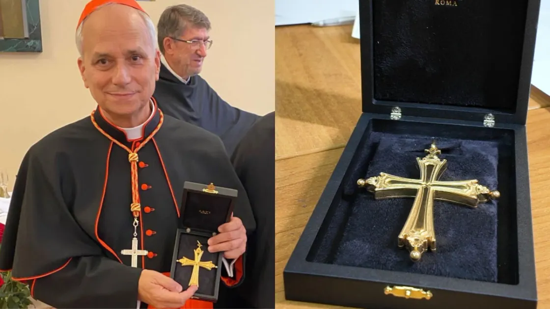 L'origine della croce pettorale non è infatti troppo lontana da San Pietro. L'artefatto è stato realizzato dai fratelli Claudio e Piero Savi, artigiani orafi di Roma con oltre trent'anni di esperienza nella produzione di argenteria e gioielleria sacra. Il loro laboratorio, in piedi dal 1937, ha creato la croce su commissione dell'Ordine Agostiniano, che successivamente ha affidato l'inserimento delle reliquie all'esperto.