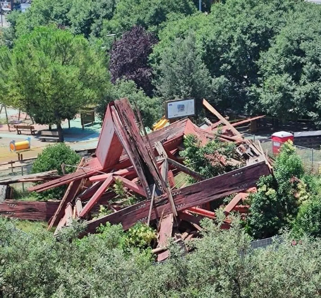 «Il Goal» di Mario Ceroli non c'è più. La scultura in legno e acciaio - abbandonata da anni - poco lontano dallo stadio Flaminio e dal palazzetto dello Sport, è crollata.