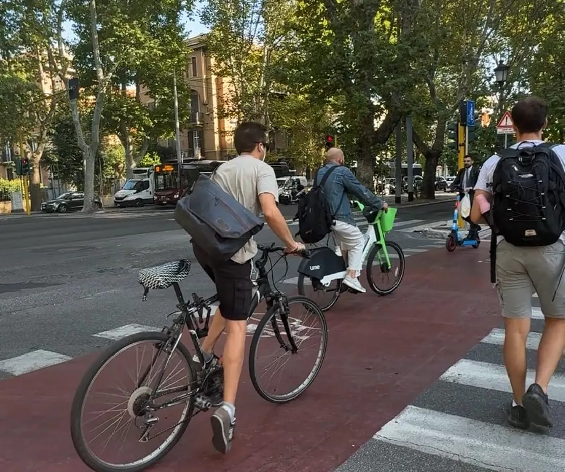 «Per una buona parte del percorso siamo su ciclabili, per il resto bisogna fare attenzione come gli altri mezzi a due ruote: guardarsi intorno, segnalare le svolte», racconta Carla Spigarelli presidente Fiab Roma BiciPa che ha organizzato il bike to work in occasione della settimana europea della mobilita sostenibile.