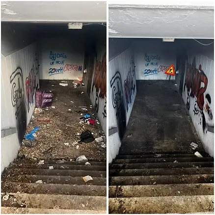 Il sottopasso dello stupro prima e dopo gli interventi di pulizia (La Capitale)