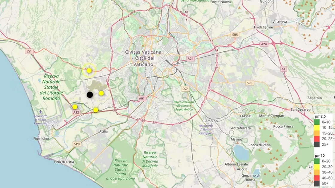 L'aria è irrespirabile in molte zone della Capitale, a causa dell'incendio divampato ieri, intorno alle 13, in zona Magliana a Roma, nei pressi di via Asciano. A certificarlo sono i livelli di inquinanti misurati nelle centraline di “Che Aria Tira?”, un progetto di Cittadinanza Attiva e di Citizen Science che ha come obbiettivo quello di costruire una rete di automonitoraggio della qualità dell’aria.
