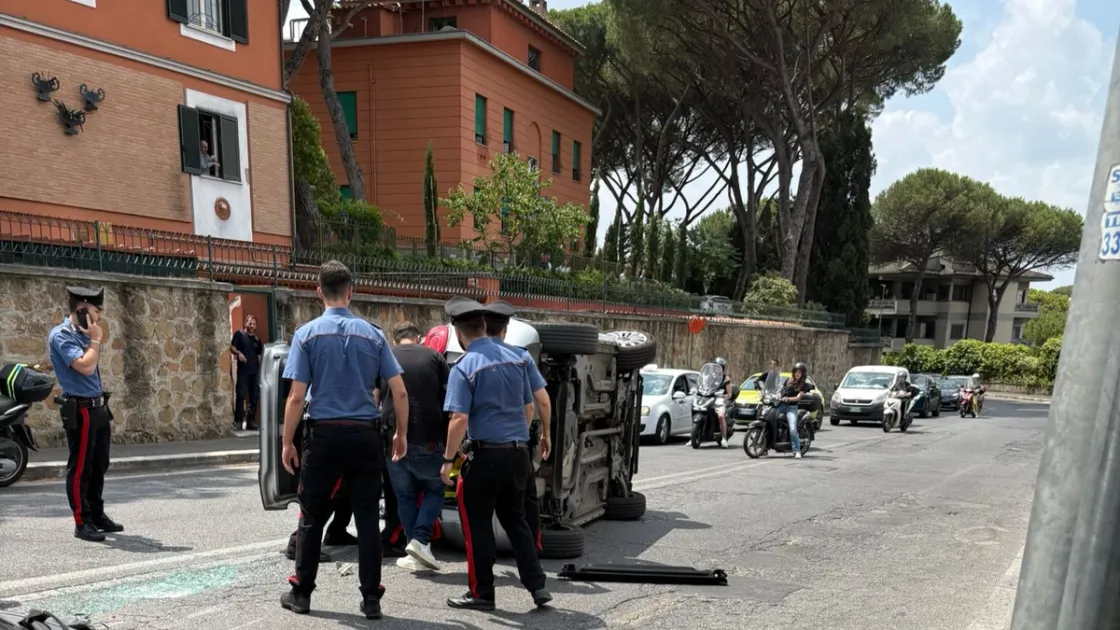 A Monte Mario, in viale Cortina d’Ampezzo, all'altezza della caserma dei carabinieri, intorno al civico 369, un incidente stradale ha causato il ribaltamento di una Toyota Yaris. Sul posto a soccorrere i feriti il personale del 118.