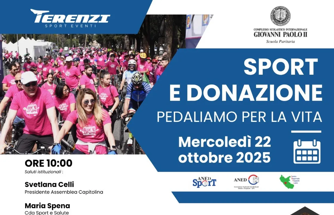 Si terrà mercoledì 22 ottobre presso l’Istituto Scolastico Giovanni Paolo II di Ostia Lido (Corso Duca di Genova 157) l’evento “Sport e Donazione: PedaliAMO per la Vita”, promosso da Terenzi Sport Eventi con l’obiettivo di sensibilizzare sull’importanza della donazione di organi e della riabilitazione attraverso lo sport.