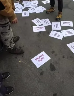 Volantini con i nomi delle donne vittime di femminicidio (Bruciamo Tutto)