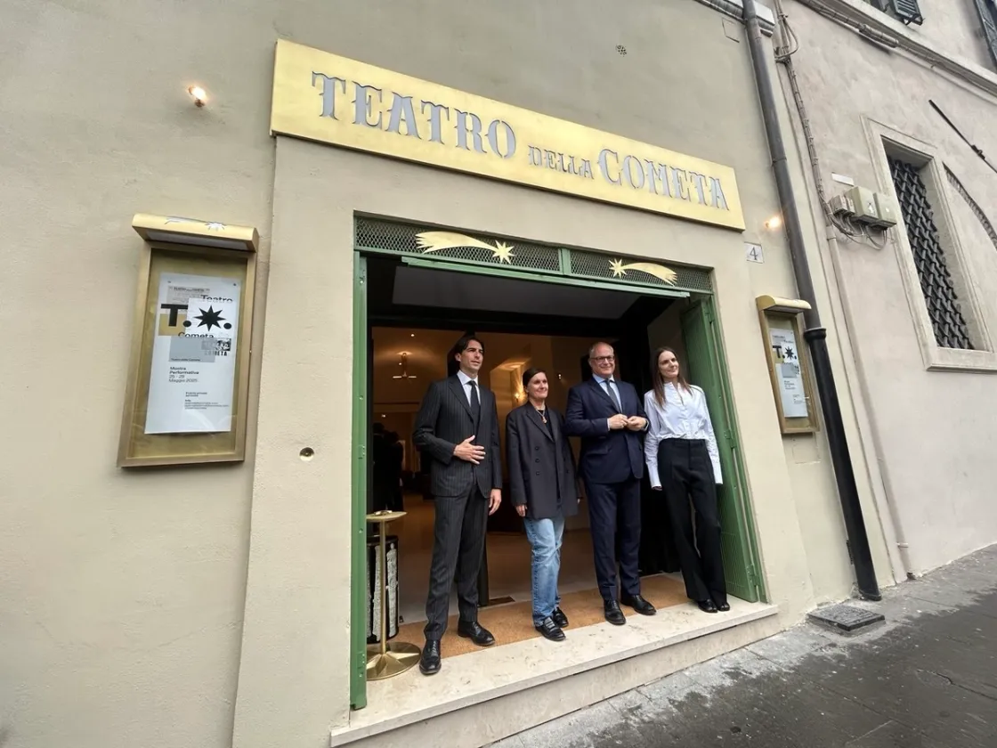 Riapre le serrande in una veste totalmente rinnovata il Teatro della Cometa, in via del Teatro Marcello, di fronte al Campidoglio. Dopo cinque anni di chiusura causata dalla pandemia da Covid, la sala nel cuore della Capitale, definita dall'architetto e storico dell'arte Antonio Muñoz come «un gioiello ai piedi del colle Capitolino», torna al centro del panorama culturale romano. L'inaugurazione per la cittadinanza sarà domenica prossima, 25 maggio, oggi tuttavia (martedì 20 maggio) lo spazio è stato aperto per la prima volta alla stampa alla presenza del sindaco Roberto Gualtieri e dell'assessore capitolino allo Sport, turismo, moda e grandi eventi Alessandro Onorato, accompagnati dalla direttrice creativa di Dior Maria Grazia Chiuri e dai suoi collaboratori.