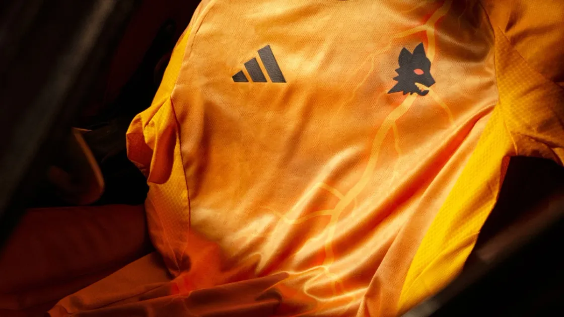 Un kit «che trae ispirazione dalla sfera mitologica dell'Antica Roma attingendo dal mito che avvolge la storia ultramillenaria dell'Urbe - racconta il club nel comunicato di lancio -. Il pattern su fondo arancione riporta infatti un possente fulmine, simbolo associato a Marte come dio dei duelli e del tuono e padre, per la leggenda, di Romolo e Remo», si legge nel comunicato.