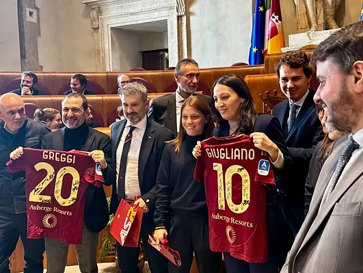 Un pomeriggio speciale per il calcio femminile a Roma. Oggi, nell’Aula Giulio Cesare in Campidoglio, la As Roma Femminile è stata premiata per la recente vittoria della Supercoppa Italiana. A consegnare il riconoscimento sono stati Svetlana Celli, presidente dell’Assemblea capitolina, e Federico Rocca, consigliere comunale e presidente del Roma Club Campidoglio.
