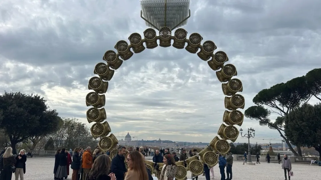 Una monumentale scultura composta da 110 cerchioni dorati e da una piramide rovesciata di 1.450 bicchieri di cristallo svetta da oggi, lunedì 1 dicembre, sulla Terrazza del Pincio. È «Solitário», la nuova installazione dell’artista internazionale Joana Vasconcelos, presentata ufficialmente questa mattina in uno dei luoghi panoramici più iconici della città grazie al patrocinio di Roma Capitale e alla collaborazione con il I municipio.