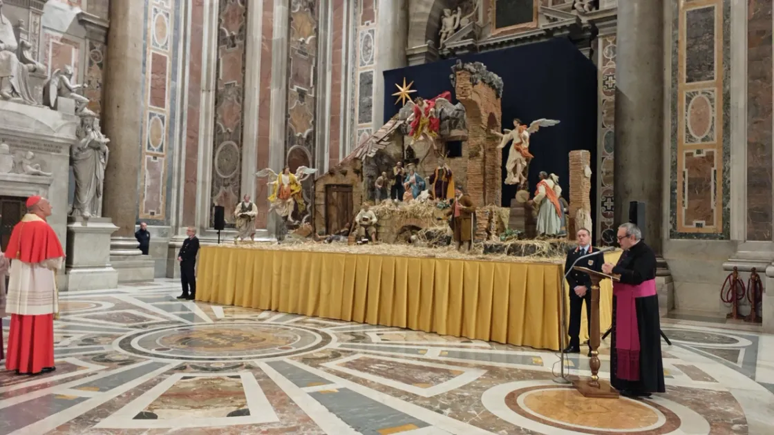 La presentazione ufficiale si è svolta al termine dei Vespri, intorno alle 17.40. In quell’occasione il cardinale Mauro Gambetti, arciprete della Basilica Papale di San Pietro in Vaticano, ha presentato e benedetto il presepe, dando avvio alle iniziative legate al periodo natalizio in Basilica.