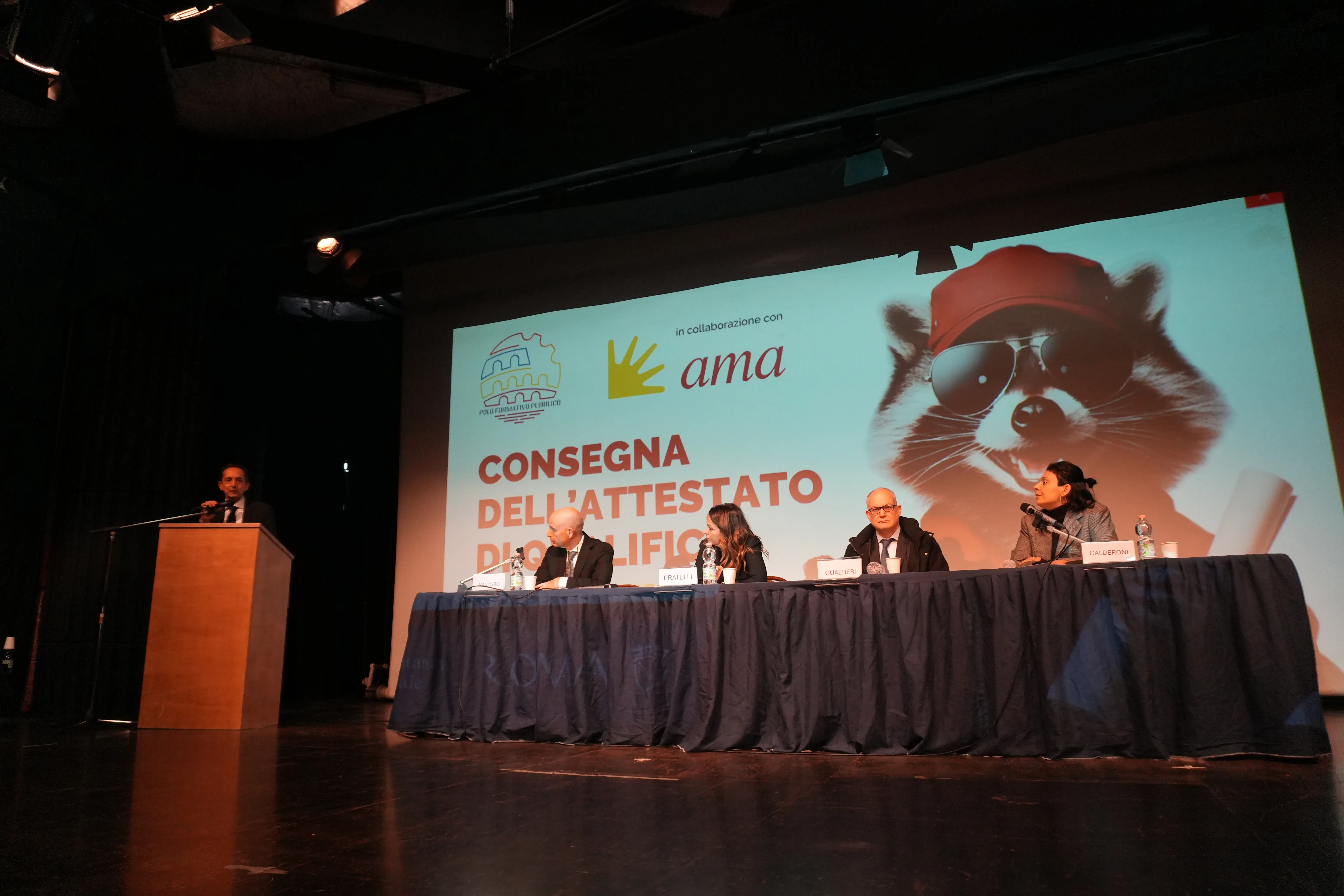 Si respira aria di Natale anche negli impegni istituzionali. Venerdì 19 dicembre, nel teatro del carcere di Rebibbia, luogo simbolo dove i fratelli Taviani girarono «Cesare non deve morire», il sindaco di Roma Roberto Gualtieri e l’assessora alla Scuola, Formazione e Lavoro Claudia Pratelli, il dirigente Ama Alessandro Filippi e la garante dei detenuti Valentina Calderone hanno consegnato i diplomi alle detenute e ai detenuti che hanno concluso con successo i percorsi di formazione professionale nel Rebibbia Nuovo Complesso e nel Rebibbia Femminile.