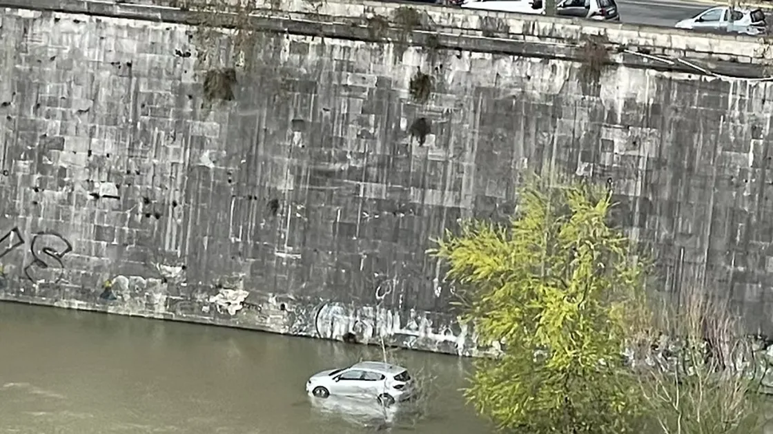 Forse parcheggiata in divieto di sosta sulla banchina, probabilmente abbandonata. Sicuramente inghiottita dalla piena del Tevere che si è gonfiato viste le piogge degli ultimi giorni. È caduta tanta acqua nell'ultima settimana ed ora potrebbe essere difficile recuperare questa auto da sotto a ponte Regina Margherita. Infatti per salvare questa auto bisognerà aspettare che il livello dell'acqua si abbassi.