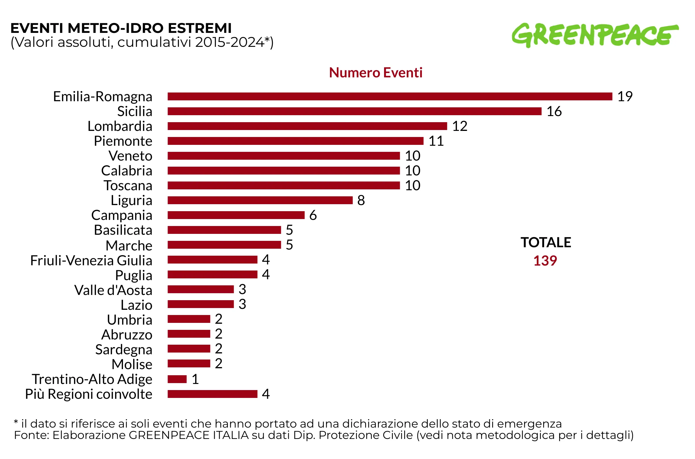 La crisi climatica nel Lazio si traduce in numeri sempre più rilevanti e in un sistema ancora fragile. È quanto emerge dagli studi di Greenpeace Italia: tra il 2015 e il 2024 si sono registrati tre eventi meteo-idro estremi che hanno portato alla dichiarazione dello stato di emergenza, con una stima complessiva dei danni pari a 154,9 milioni di euro.