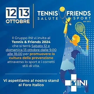 Due giorni all'insegna della salute e della prevenzione. È questo il programma dell’appuntamento al Foro Italico con il Tennis & Friends 2024, evento al quale il Gruppo Ini, da quasi 80 anni punto di riferimento per la sanità privata accreditata in Italia, parteciperà sabato 12 e domenica 13 ottobre.