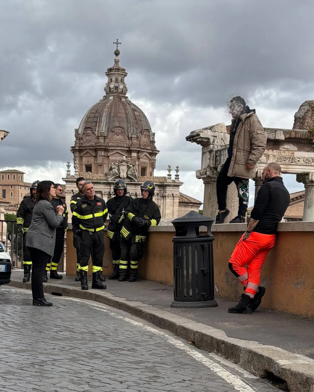 L'uomo, che chiedeva con insistenza un alloggio e cure per una malattia cronica, è stato inizialmente coinvolto dagli agenti della Polizia Locale, dai vigili del fuoco e dagli operatori del 118. Insieme a loro si è quindi unita poco dopo anche la capo gabinetto del sindaco di Roma, Giulia Tempesta, che si trovava negli uffici che guardano su via Monte Tarpeo.