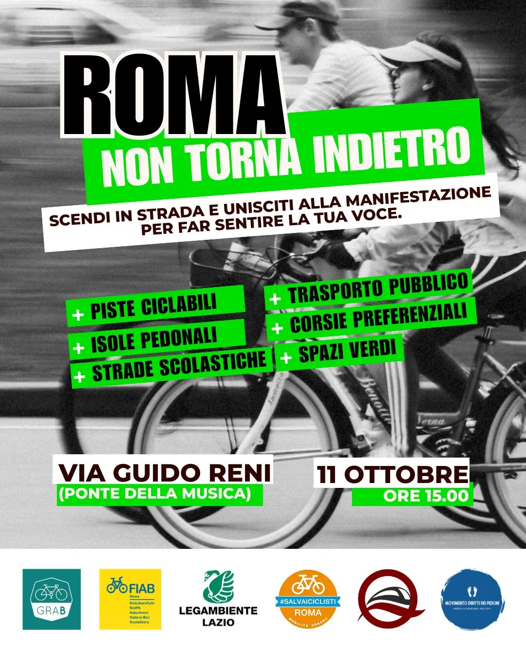 Tra loro ci sono Legambiente Lazio, Odissea Quotidiana, GRAB e Velolove, Salvaiciclisti e Movimento Diritti dei Pedoni insieme a Open House Roma, Touring Club Italia, Settimo Biciclettari, Iam – Intorno alle Mura, Free Wheels Club, Streets for Kids, Bike to School, Cittadini per l’Aria, Sentiero Pasolini, SL&A Turismo e Territorio, Vivilitalia, Associazione Le Bici, Kyoto Club e Rebike.