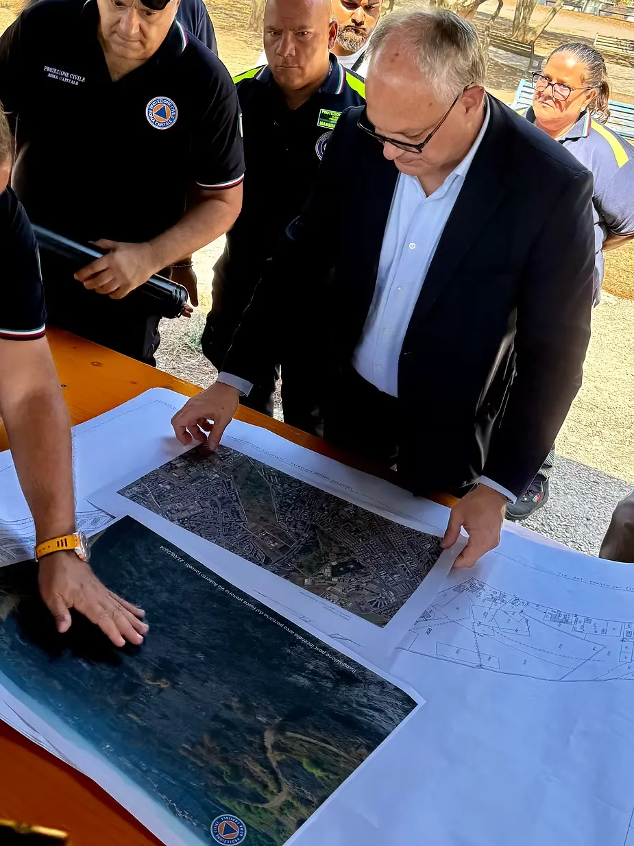 Sopralluogo di Gualtieri a Torre Spaccata dopo l'incendio avvenuto lo scorso 21 agosto (La Capitale)