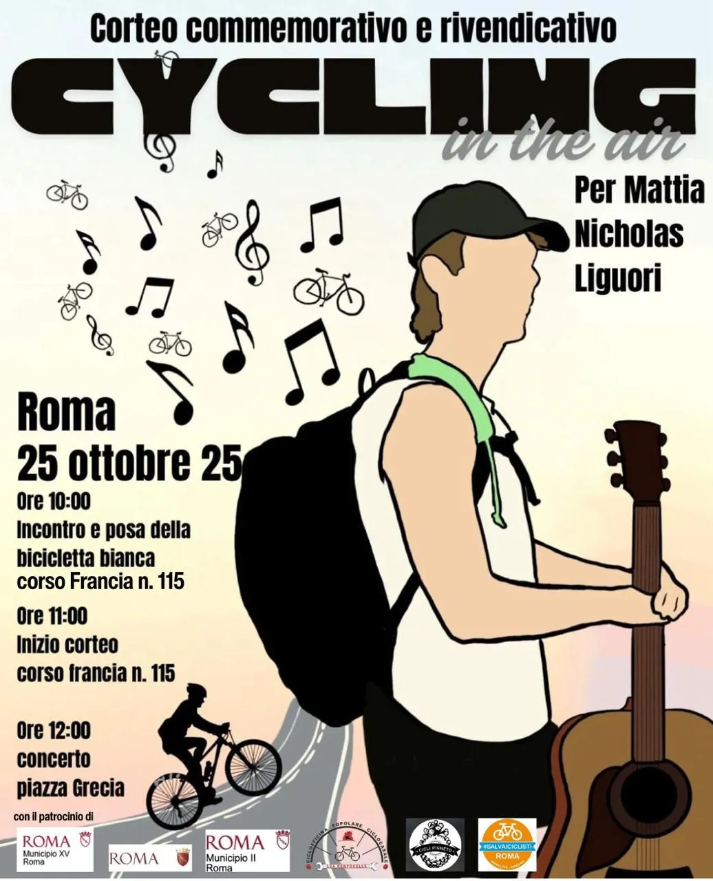 E’ morto il 2 ottobre Mattia Liguori, in uno scontro stradale con un’automobile, mentre rientrava a casa in bicicletta dalla manifestazione pro Palestina nata spontaneamente a Roma. Il ragazzo, studente del liceo Lucrezio Caro, si trovava in Corso Francia, un viale a sei corsie - tristemente celebre per la sua pericolosità - considerato «un’ autostrada» urbana dove hanno perso la vita altri giovani prima di lui. Ora, «per trasformare un dolore personale in un gesto collettivo di consapevolezza e memoria» gli amici di Mattia, la famiglia e l’associazione Salvaiciclisti hanno organizzato «Cycling in the Air» con il sostegno dei municipi II e XV.