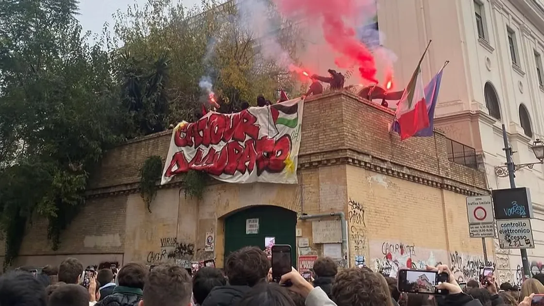 Dopo il Plinio e l'Albertelli, fumogeni rossi e un grande manifesto raffigurante una bandiera della Palestina con la scritta: «Cavour occupato». La protesta ha un duplice obiettivo, solidarizzare con la Palestina e opporsi alle politiche del governo Meloni. A diffondere la notizia gli studenti del comitato Osa, con un comunicato in cui spiegano le ragioni della mobilitazione.