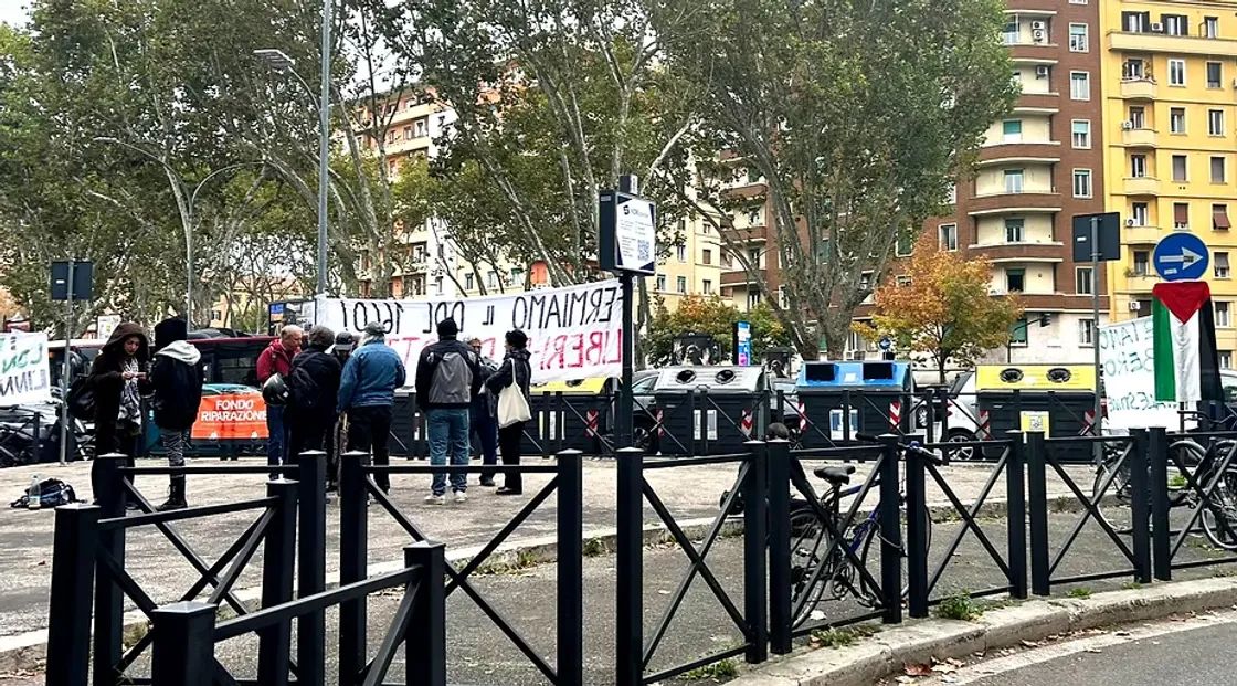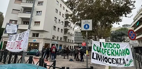 «Tiziano Libero», «Free Palestine», «I video confermano l'innocenza di Tiziano». Sono gli striscioni comparsi al presidio davanti alla città giudiziaria. Dovrà difendersi davanti ai giudici del tribunale di piazzale Clodio dall’accusa di manifestazione non autorizzata, lesioni e resistenza a pubblico ufficiale Tiziano Lovisolo , il giovane di Urbino arrestato il 5 ottobre scorso durante la manifestazione pro Palestina, oggi giovedì 14 novembre, comparirà davanti ai giudici della Corte per la prima udienza del processo.