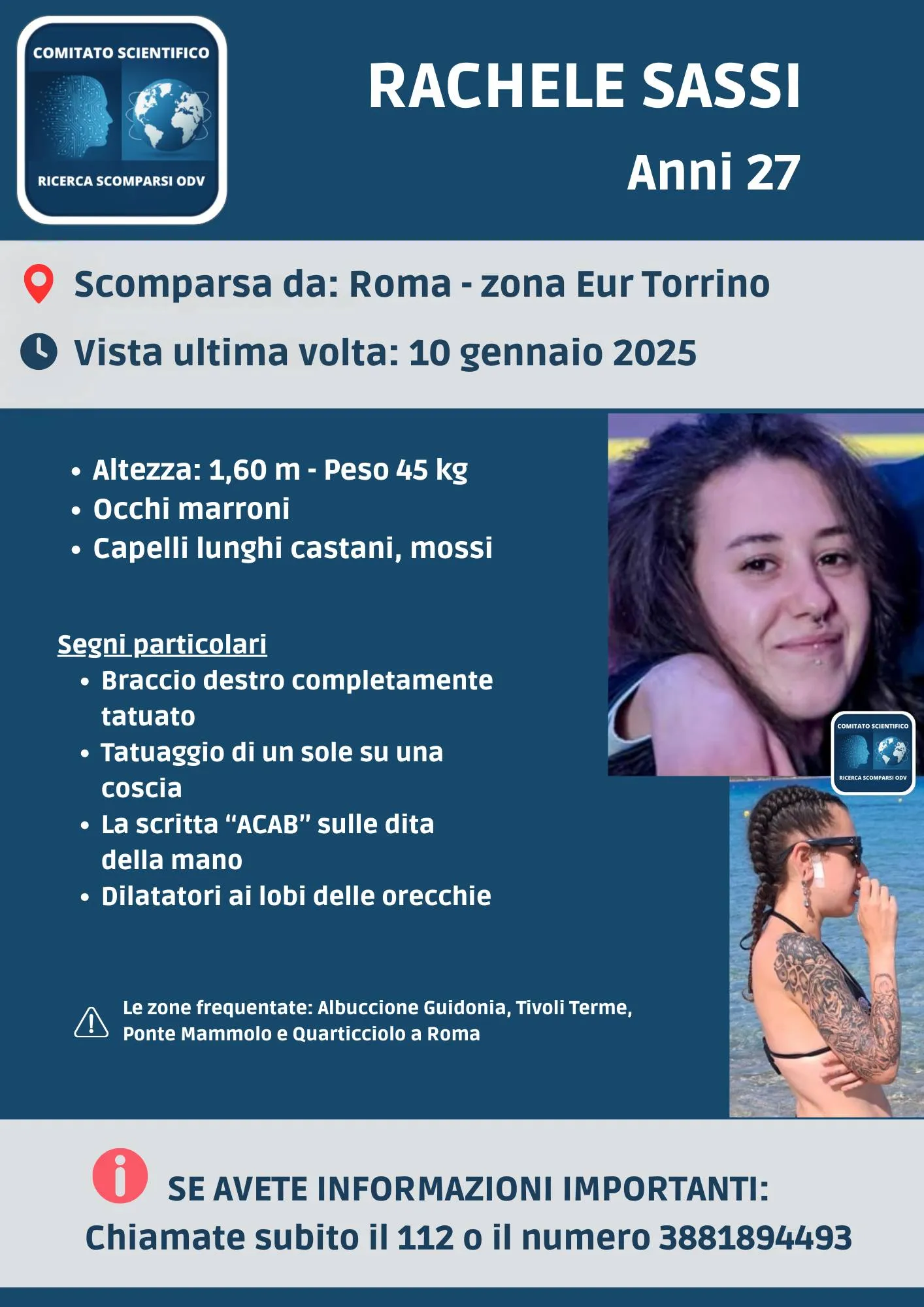 Il caso, sebbene riguardi una persona maggiorenne, è considerato particolarmente delicato: Rachele vive un periodo di profonda fragilità e, come spiegano i volontari del Comitato Scientifico Ricerca Scomparsi OdV, ha bisogno urgente del sostegno della sua famiglia.