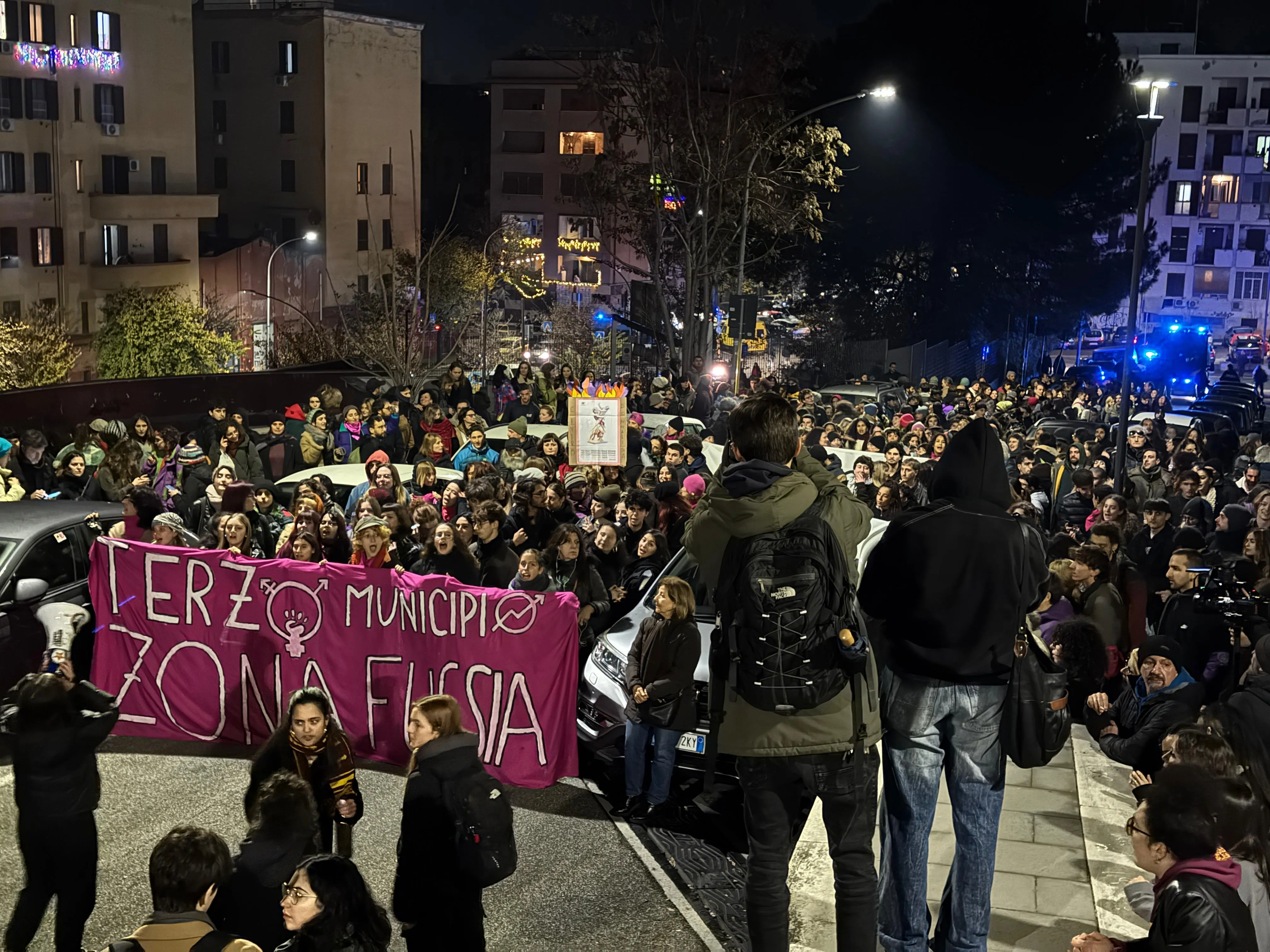 Il presidio è stato convocato dopo lo stupro avvenuto nella notte tra il 6 e il 7 dicembre, davanti alla stazione Jonio della metro B1, ai danni di una ragazza di 23 anni. Una partecipazione ampia, rafforzata dalla presenza di movimenti e collettivi transfemministi, tra cui Non Una di Meno e realtà antiviolenza del territorio, che ha trasformato l’iniziativa in un corteo spontaneo per le vie del quartiere.