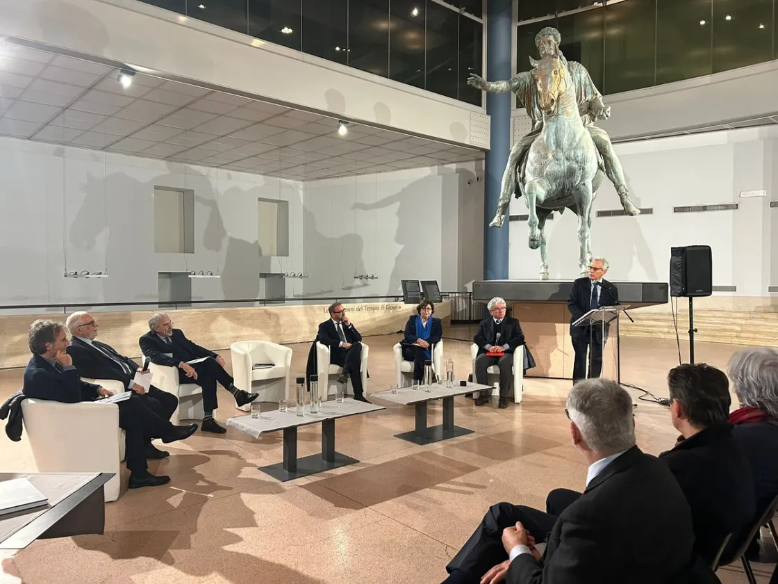 Al Campidoglio, nei Musei Capitolini si celebra un anniversario emblematico. Sono infatti trascorsi vent’anni da quando, il 22 dicembre del 2005, è stata qui inaugurata la Sala dell’Esedra del Marco Aurelio. La nuova grande aula vetrata, costruita all’interno di quello che storicamente era denominato il «Giardino Romano» del Palazzo dei Conservatori, accoglie oggi la grande statua equestre di Marco Aurelio insieme ad alcuni dei più importanti bronzi capitolini: l’Ercole in bronzo dorato proveniente dal Foro Boario e i resti del colosso bronzeo di Costantino.